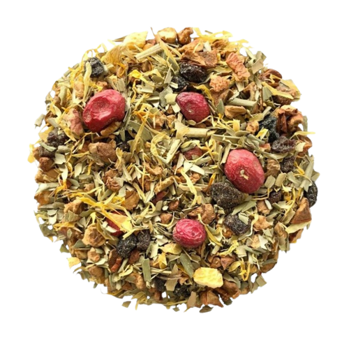 Ingrédients : Pomme, feuilles d'olivier, mélisse (21%), verveine entière, feuilles de verveine (11%).