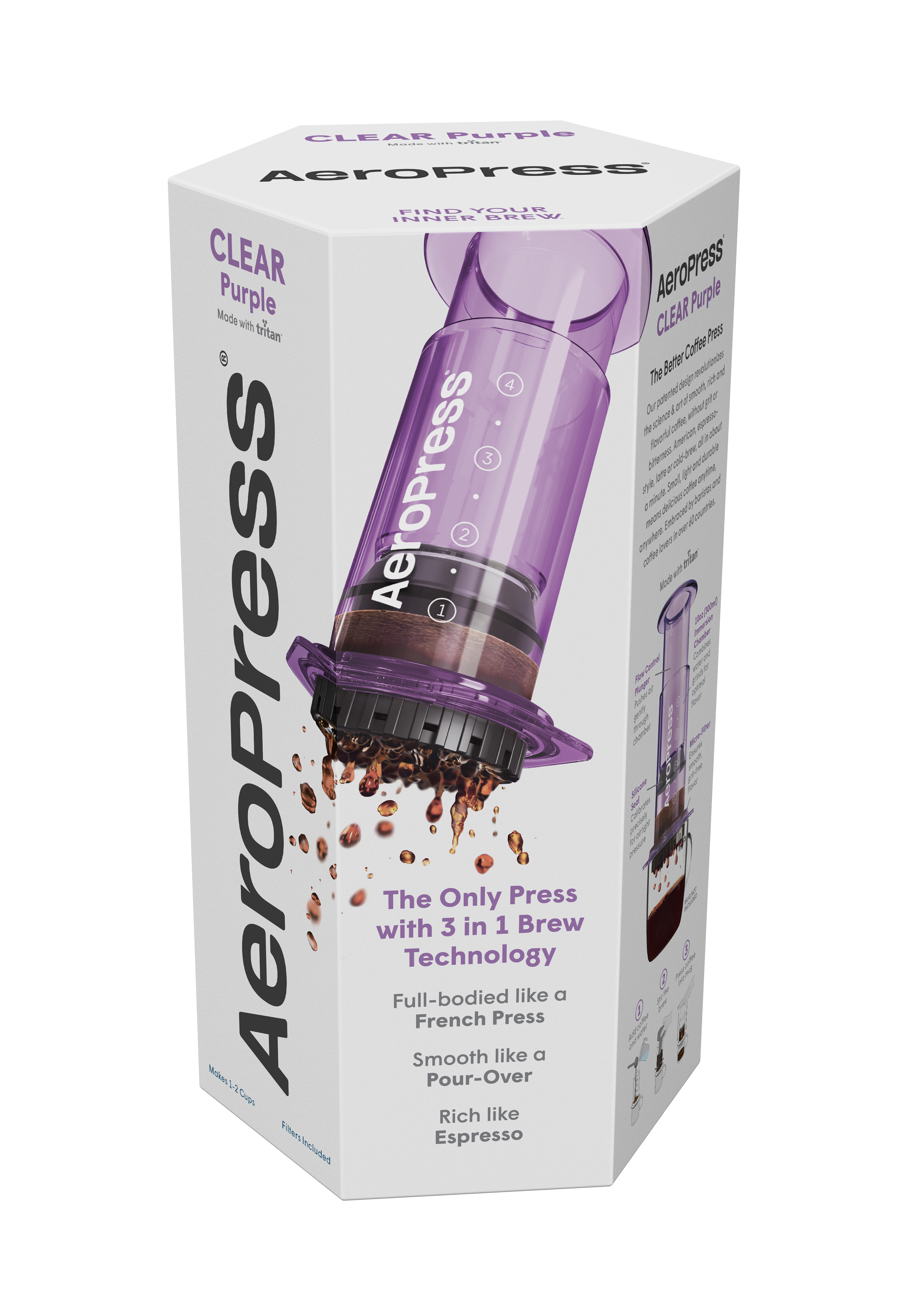 Fabriquée en plastique Tritan™ ultra résistant, elle offre la même technologie d’infusion 3 en 1 brevetée (immersion, pression et filtration) — pour un café riche, aromatique et sans amertume, où que vous soyez.