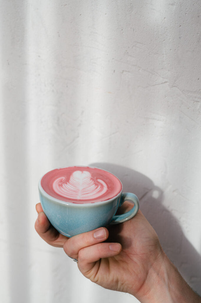 Résultat : un latte suave, gourmand, délicatement sucré, et d’un rose naturel irrésistible — à savourer chaud ou glacé.
